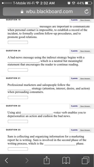 Solved Oooo T Mobile Wi Fi 2 32 Am Wbu Blackboard Com C Chegg Com